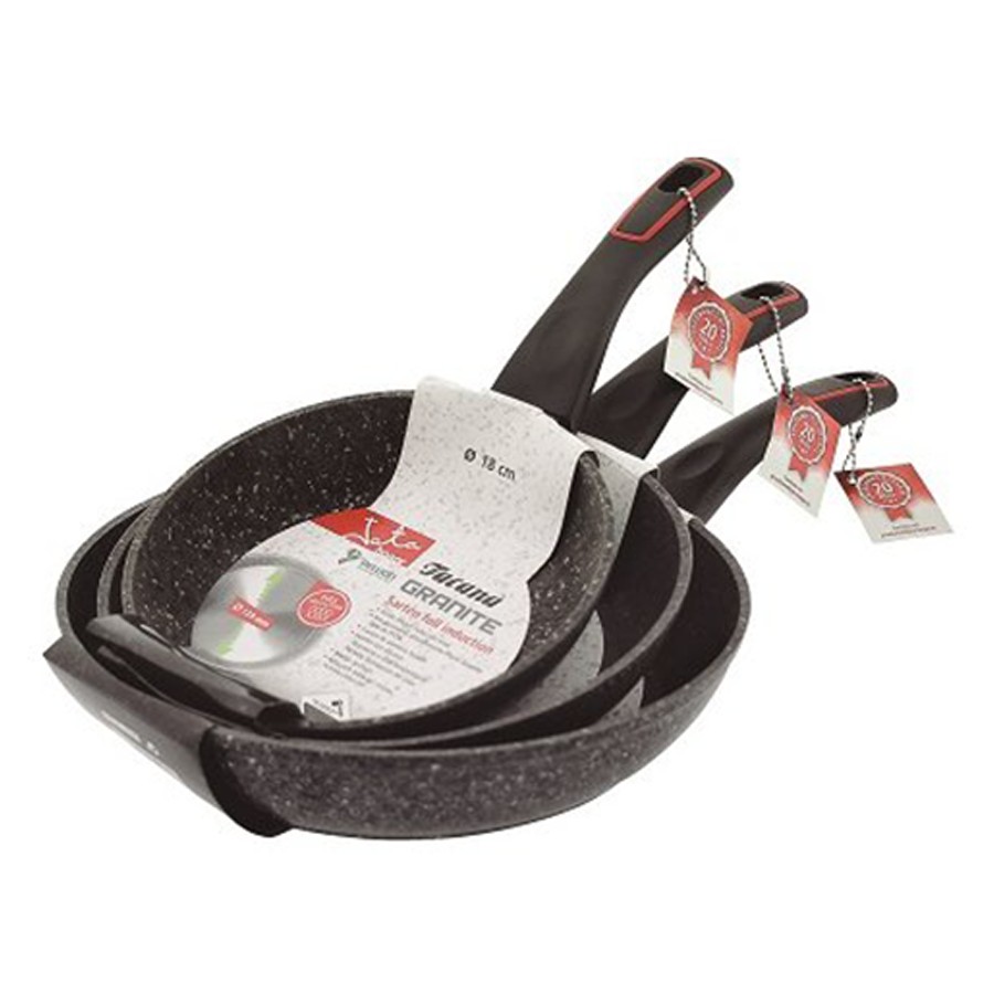 Jata Induction Forge Aluminium Pans Diameters 18, 22 and 26 cm. Non-stick coating and diffuser base.