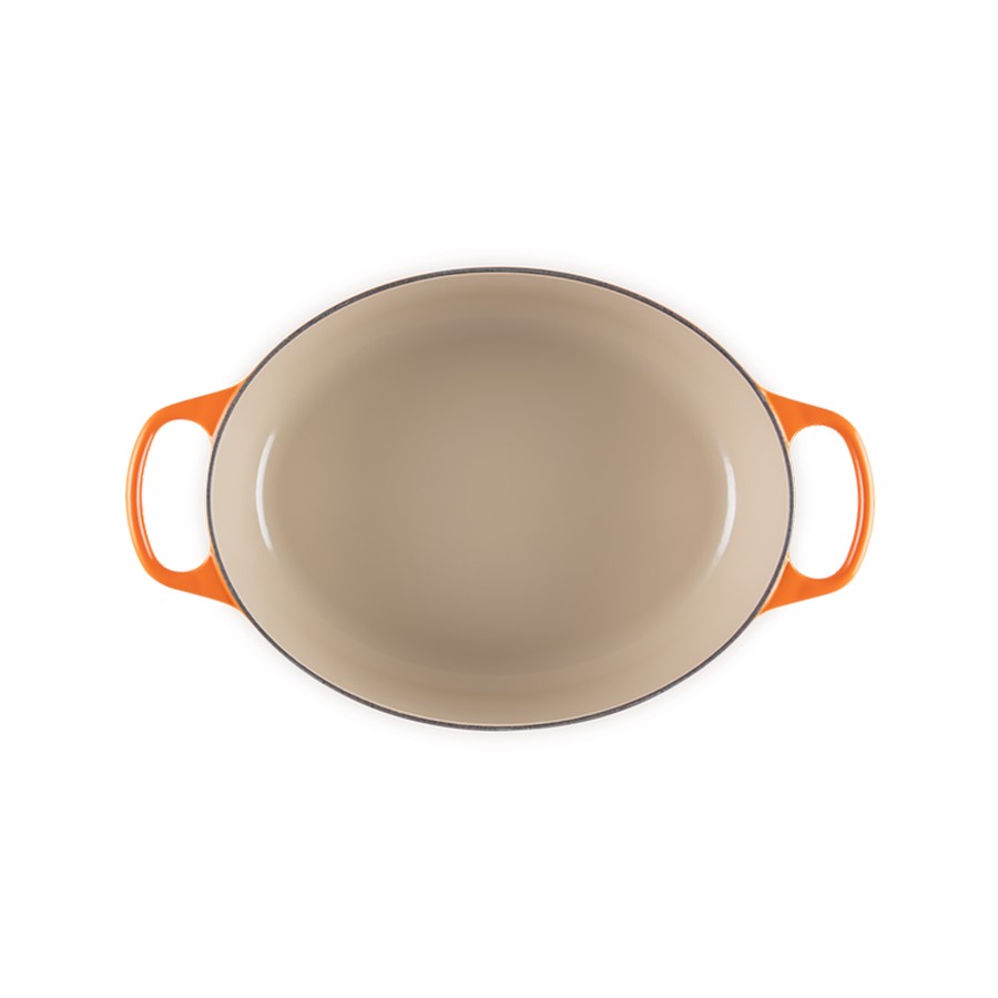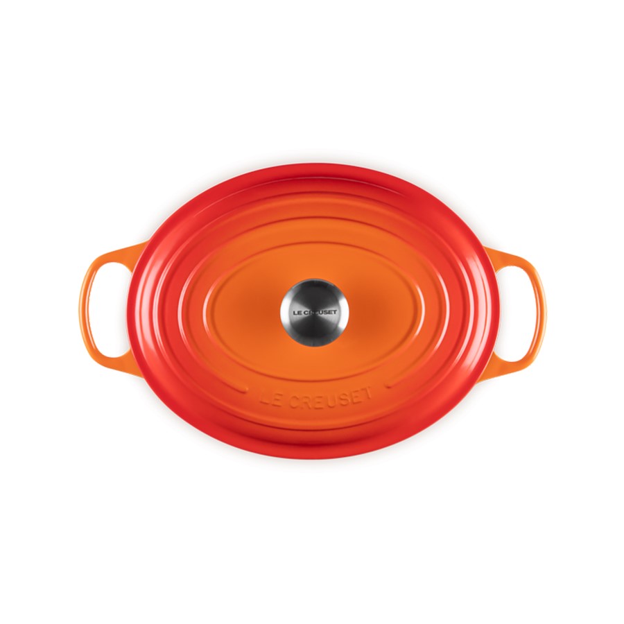 The Le Creuset Oval Casserole in Flame, 29 cm, blends robust craftsmanship with a vibrant, fiery hue. Crafted from durable cast iron, it ensures excellent heat distribution and retention, perfect for slow-cooking, baking, and braising. The iconic Flame color adds a bold and energetic touch to any kitchen, complemented by Le Creuset's renowned enamel finish. Perfectly sized for family meals or gatherings, this oval casserole dish merges practical functionality with aesthetic appeal, making it an essential piece for chefs and home cooks who value high-quality cookware that enhances both cooking performance and kitchen decor.