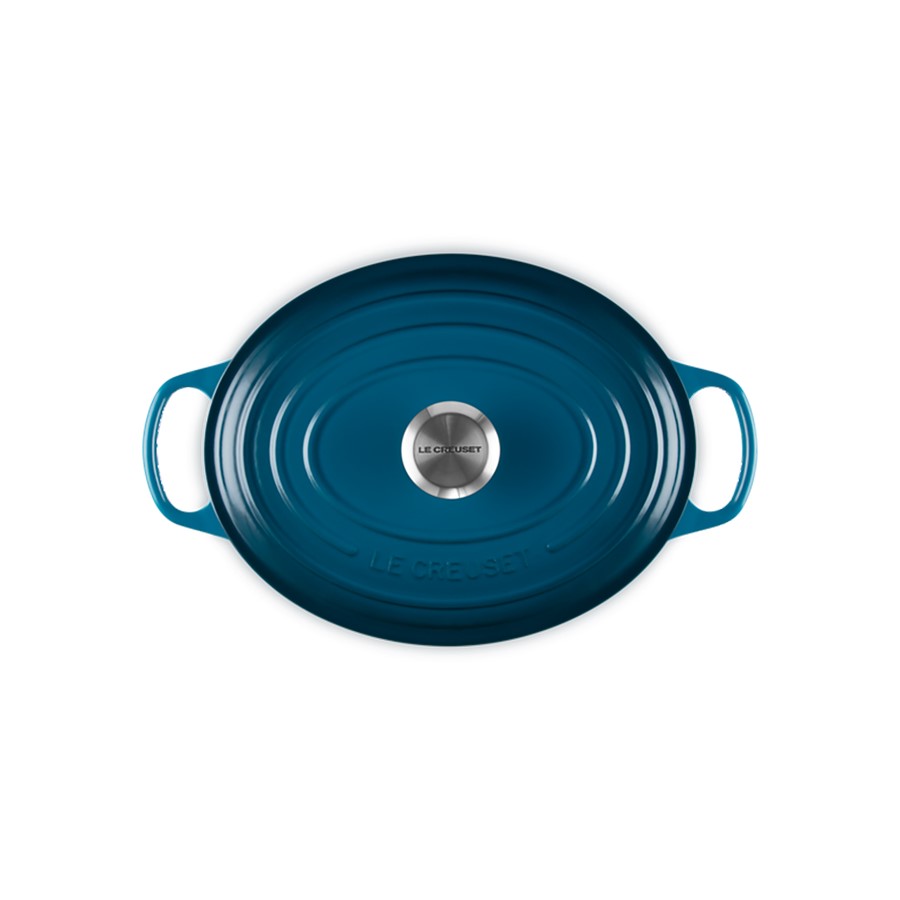 The Le Creuset Oval Casserole in Deep Teal, 29 cm, combines robust craftsmanship with a rich, sophisticated hue. Crafted from durable cast iron, it ensures excellent heat distribution and retention, making it perfect for slow-cooking, baking, and braising. The Deep Teal color adds a luxurious and stylish touch to any kitchen, complemented by Le Creuset's renowned enamel finish. Perfectly sized for family meals or gatherings, this oval casserole dish merges practical functionality with aesthetic appeal, making it an essential piece for chefs and home cooks who value high-quality cookware that enhances both cooking performance and kitchen decor.