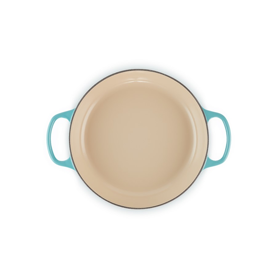 The Le Creuset Signature Round Braiser in Teal, 26 cm, combines exceptional craftsmanship with a stunning, modern hue. Made from durable cast iron, it ensures superior heat distribution and retention, perfect for braising, sautéing, and shallow frying. The Teal color adds a fresh and stylish touch to any kitchen, beautifully complemented by Le Creuset's renowned enamel finish. The included lid enhances versatility, allowing for moisture retention and even cooking. Ideal for preparing a variety of dishes, this round braiser merges practical functionality with aesthetic appeal, making it an essential choice for chefs and home cooks who appreciate high-quality cookware that elevates both cooking performance and kitchen decor.
