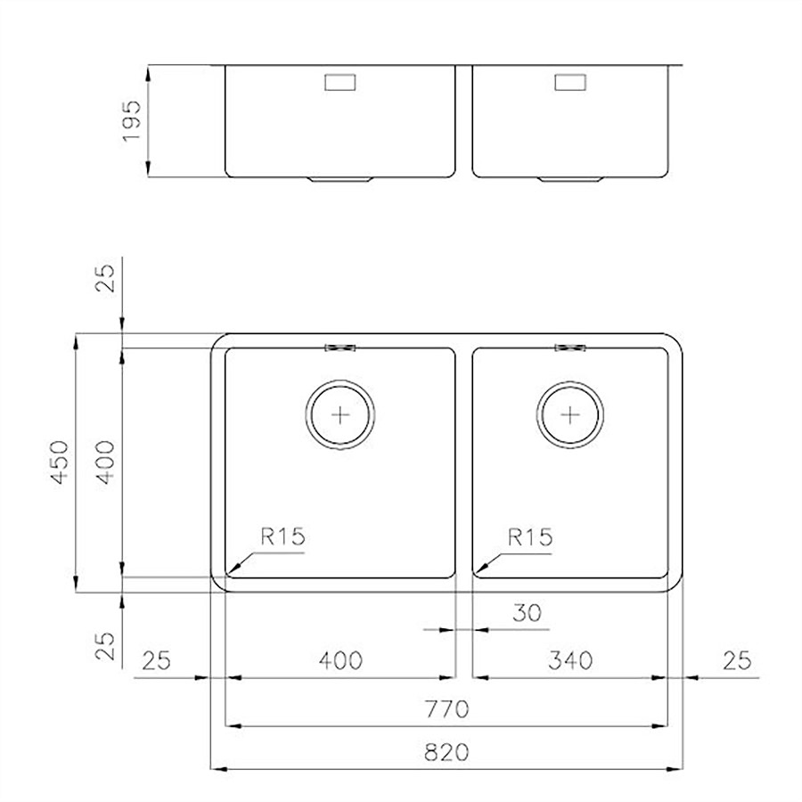 The Foster Sink KE - R15 combines modern design with advanced functionality, making it a great addition to any kitchen. Its small radius corners provide a sleek, contemporary look while also making cleaning easier and maximizing the usable bowl space. The sink is equipped with a Basket 3.5" waste fitting, which features a large drain and a practical basket cap to catch solid waste, preventing clogs and ensuring hassle-free maintenance.