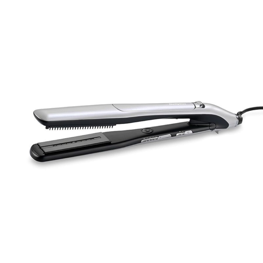 The BaByliss Ulta Steam Straightener delivers professional salon-quality results with advanced 360° steam technology for super smooth, shiny hair. Its extra-wide 36mm ceramic plates and steam function gently moisturize and style, perfect for long or thick hair. Features include two steam settings, a removable comb attachment, five heat levels up to 210°C, and an ergonomic design for effortless straightening, curls, or waves.