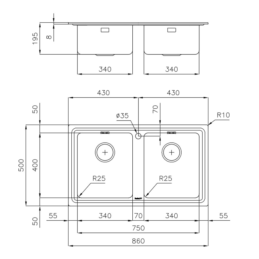 Bowl dimension: | 340x400 mm - Thickness: 1 mm |