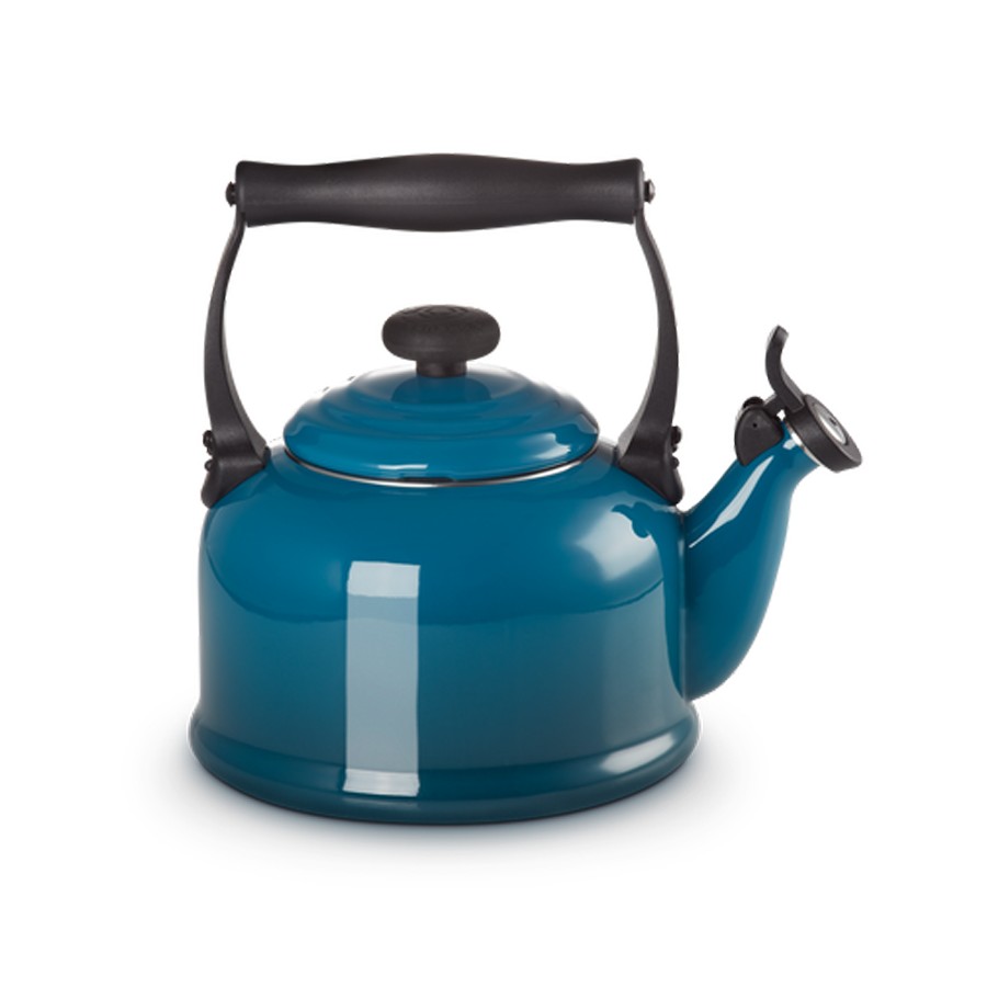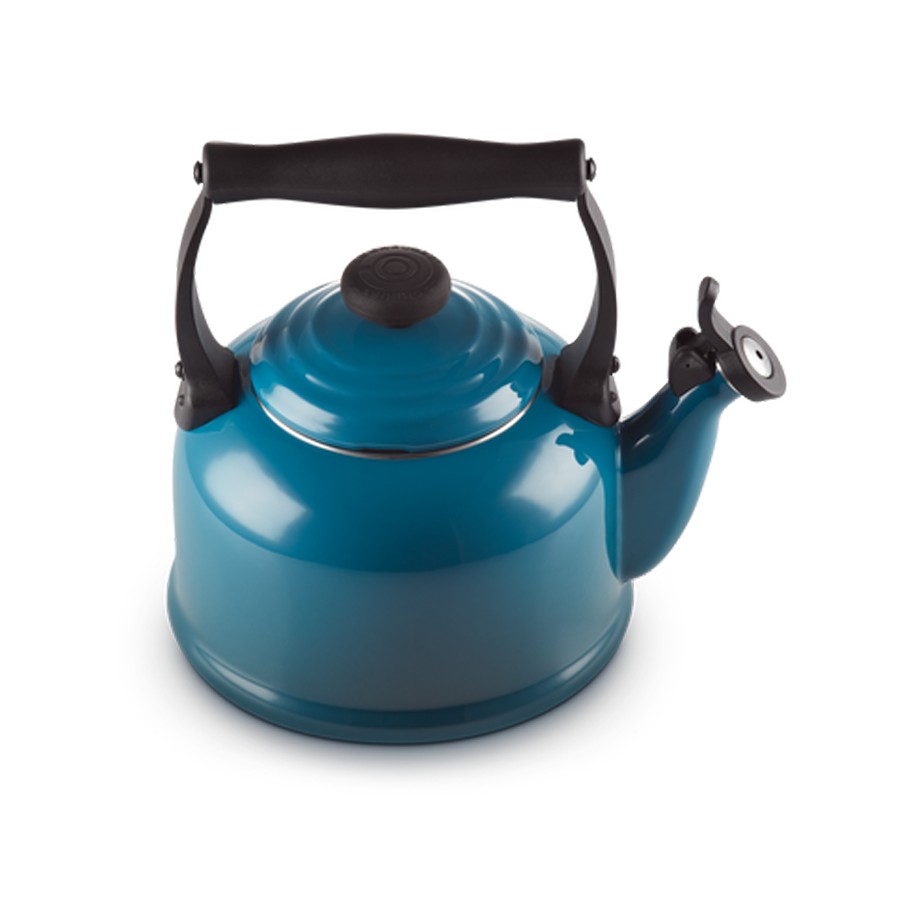 The traditional Le Creuset 2.1L kettle exudes classic charm and functionality. Made from high-quality carbon steel with a vibrant enamel finish, it ensures rapid heating and even heat distribution. Its ergonomic, heat-resistant handle and easy-pour spout provide safe and convenient use. The 2.1L kettle features a fixed whistle to signal boiling water, adding both practicality and a touch of nostalgia. Suitable for all heat sources, including induction, it blends seamlessly into any kitchen decor. While dishwasher safe, hand washing is recommended to maintain its enduring beauty and performance.
