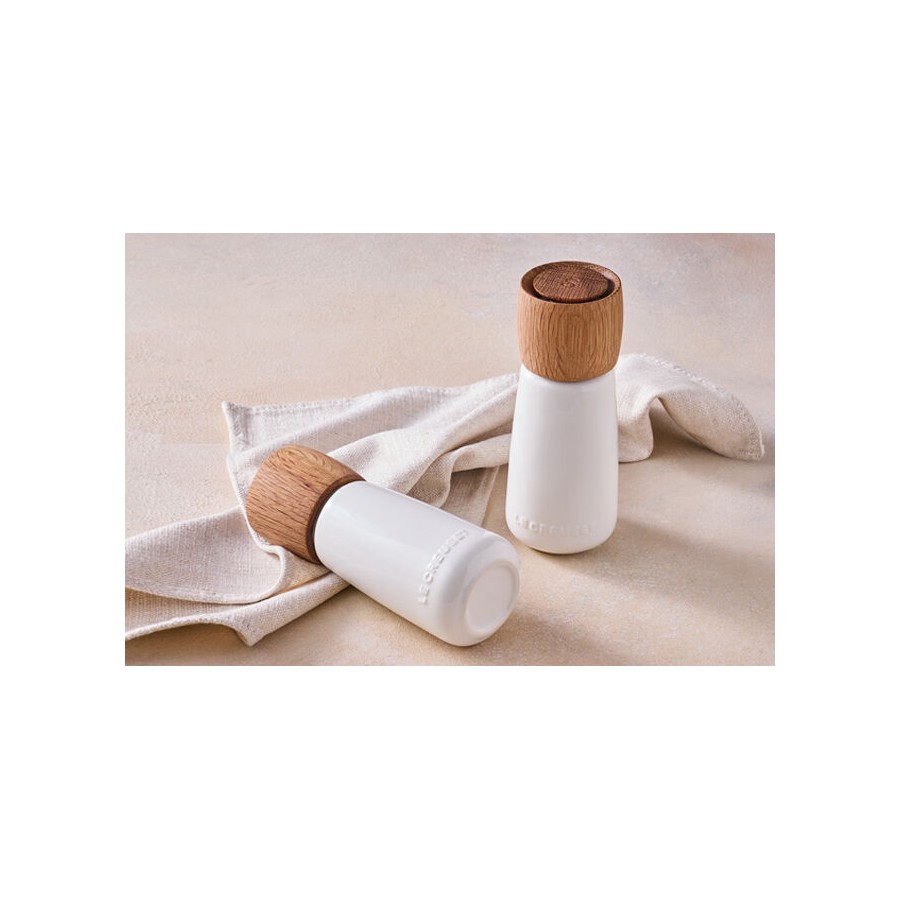 The Le Creuset 270ml Top Grind Salt Mill combines stylish design with high performance. Made from durable ABS plastic with a ceramic grinder, it efficiently grinds peppercorns to the desired consistency, from fine to coarse. The top-grind mechanism ensures easy use, preventing spills when not in use. Available in a variety of vibrant colors, it adds a pop of elegance to any kitchen or dining table. The ergonomic shape provides a comfortable grip, and its robust construction ensures long-lasting durability, making it a practical yet stylish tool for everyday cooking.