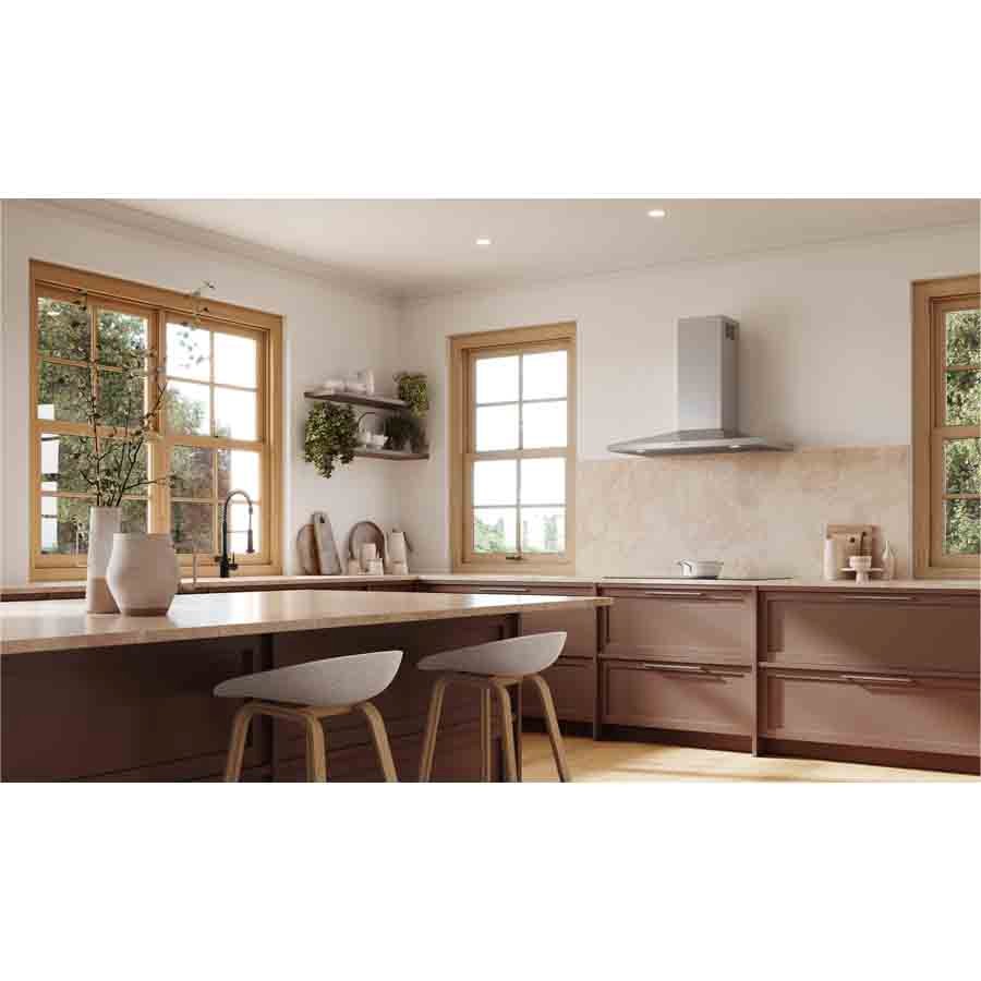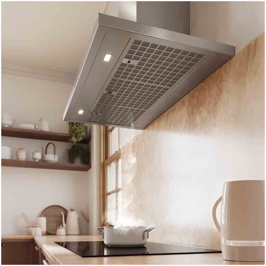 The Falmec Mizar 60 cm wall-mounted hood blends sleek Italian design with serious performance. Crafted entirely from AISI 304 stainless steel in a refined Scotch Brite finish, it features an 800 m³/h motor that effectively removes cooking fumes while maintaining quiet operation at 68 dB.