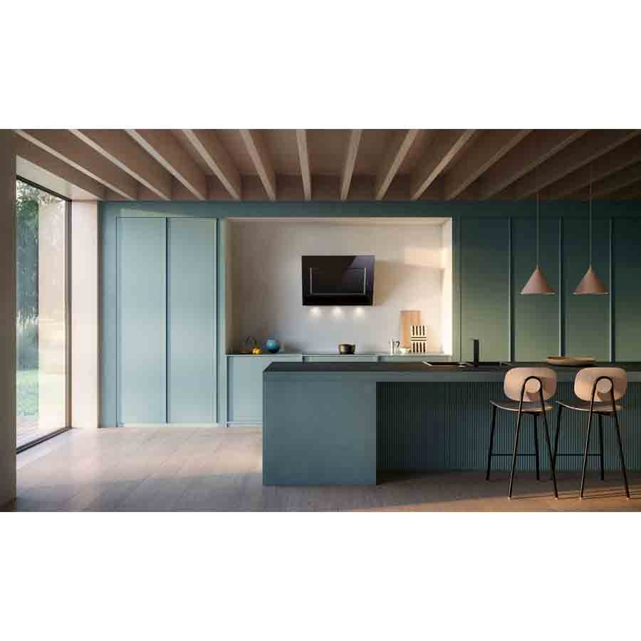 The Falmec Quasar 60 cm wall hood delivers sleek modern design and high-tech functionality in one bold package. Its wide, inclined black tempered glass front panel paired with a stainless steel frame (AISI 304 scotch brite finish) adds a refined visual statement to contemporary kitchens, while its powerful 800 m³/h motor with perimeter suction ensures efficient grease and odor extraction without visual distraction