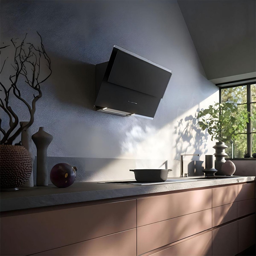 The Falmec Verso Easy wall-mounted hood beautifully balances modern design with top-tier functionality in 55 cm or 85 cm widths. Its sleek tempered-glass facade consists of two overlapping panels, with an adjustable upper panel offering dynamic vapor extraction from both front and underside thanks to an 800 m³/h motor. Enjoy touch controls, dimmable dynamic LED lighting with warm-to-cool color options (2700 K–5600 K), and a 24-hour air filtration cycle. Equipped with washable metal grease filters and regenerable Carbon.Zeo technology, Verso Easy ensures maintenance is simple and highly effective. Fully compatible with Falmec’s Dialogue System and remote-control operation, this hood blends minimalist elegance with powerful performance and effortless maintenance.