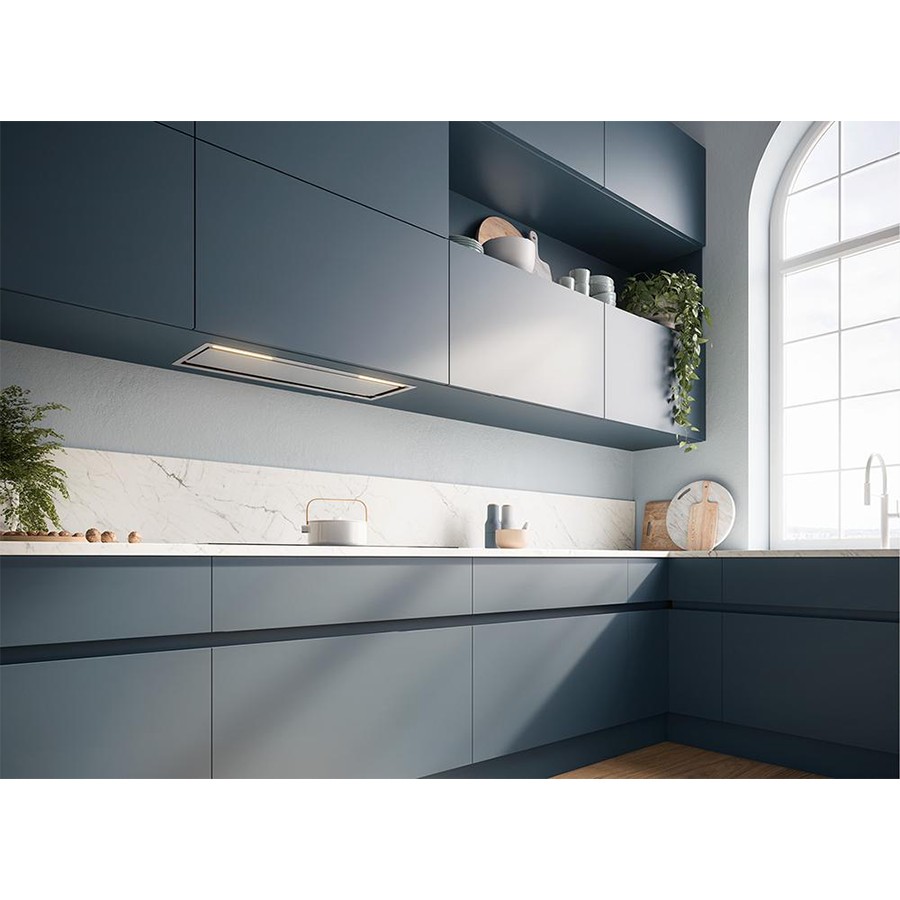 The Falmec Gruppo Incasso Plus Green Tech is a built-in cooker hood with powerful extraction performance of up to 800 m³/h powered by a high-efficiency Green Tech motor. It uses perimeter suction and electronic controls to efficiently remove cooking fumes, and includes a removable, washable metal grease filter with optional charcoal filter and remote control for flexible operation. The hood also has dimmable LED lighting with dynamic light settings to illuminate your cooking area and is designed for seamless integration into kitchen cabinetry for a sleek, functional installation.