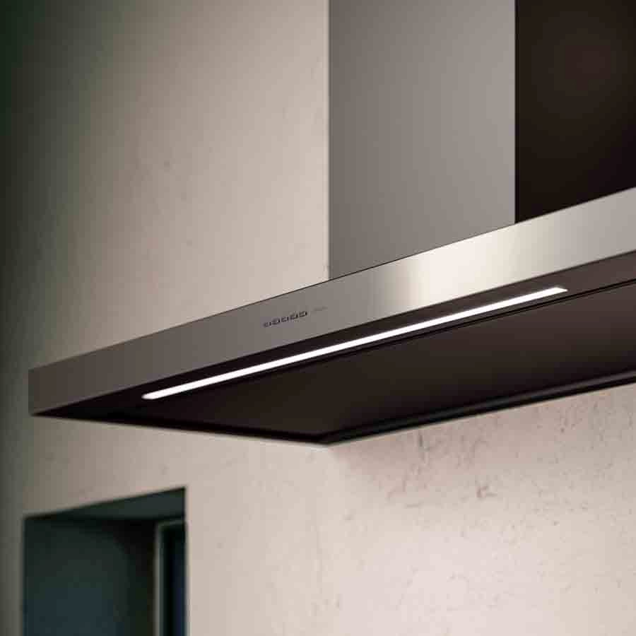 This sleek Falmec Plane Plus NRS 120 cm wall hood blends minimalist elegance with kitchen performance prowess. Crafted from premium AISI 304 stainless steel and finished in Scotch Brite, its inverted T silhouette houses a powerful 800 m³/h motor with patented NRS® silent-perimeter suction capturing cooking fumes efficiently while maintaining a whisper quiet 53-57 dB noise level. Features like dimmable dynamic LED lighting (2,700-5,600 K), intuitive electronic controls, washable metal grease filters, and Falmec's Dialogue System for hob to hood connectivity deliver both user friendly operation and refined style. With energy class A efficiency, optional Carbon Zeo recirculation filters, and a contemporary profile, this cooker hood delivers professional level extraction in a stunning, noise-conscious design perfect for modern culinary spaces that demand both performance and aesthetics.