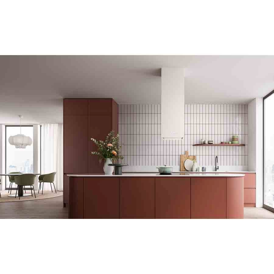 The Falmec Mira Plus Island Hood 40 cm is a compact yet powerful centerpiece for modern kitchens. With its sleek white varnished steel housing, perimeter suction, and a high performance 800 m³/h motor, it efficiently captures cooking vapors while keeping noise to a gentle 61 dB