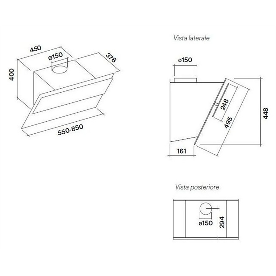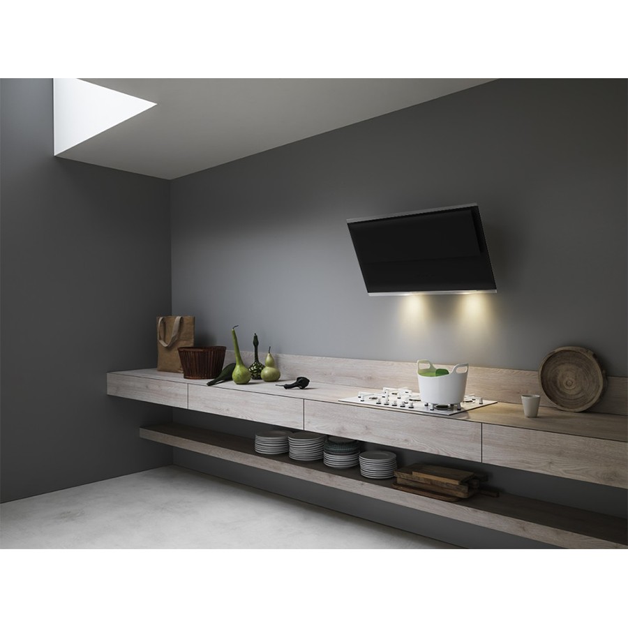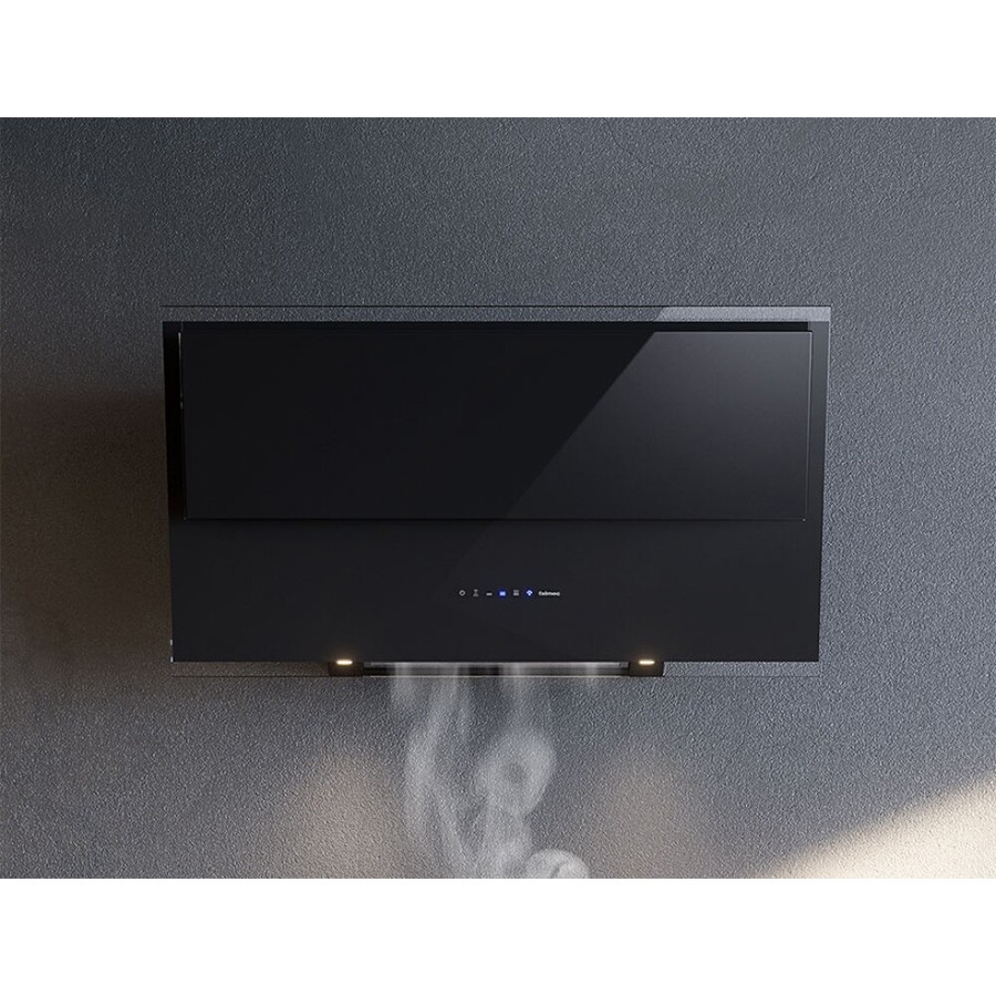 The Falmec Verso 85 cm wall-mounted hood in black glass combines striking design with efficient performance. Dual suction zones, powered by an 800 m³/h motor, ensure effective fume extraction from both front and underside. Touch controls, dimmable LED lighting (2700–5600 K), and compatibility with Falmec’s Dialogue System offer smart functionality, while washable filters and optional Carbon.Zeo or charcoal filtration keep maintenance simple.