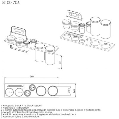 bowls with lid, 2 glass salt shakers, 2 stainless steel bottle holders