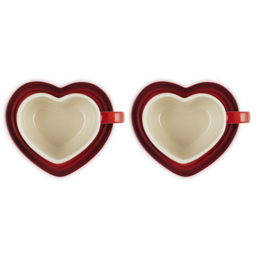 Crafted from premium high-fired stoneware, the Le Creuset Stoneware Set of 2 Heart Mugs with Saucers brings a charming and functional touch to your beverage routine, with each heart-shaped mug featuring a generous ~220 ml capacity and paired with its own saucer for serving coffee, tea, hot chocolate or even desserts.