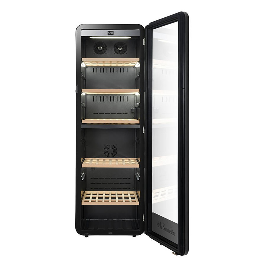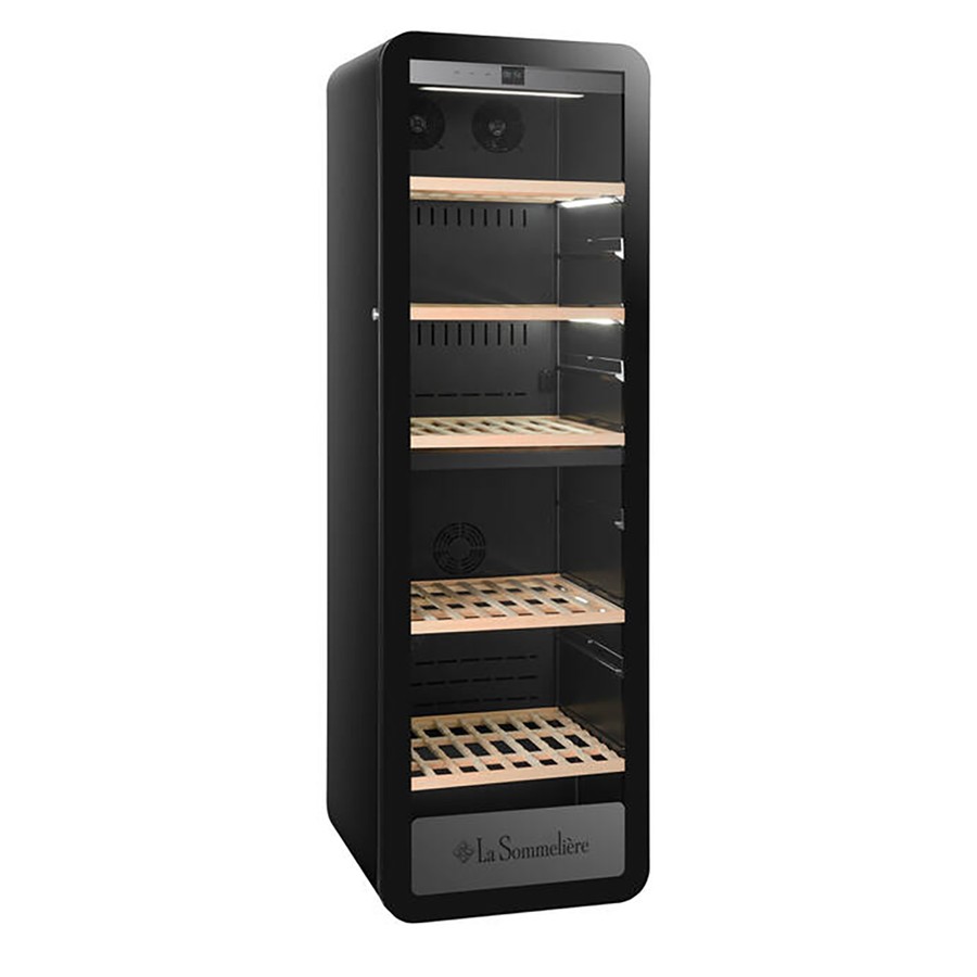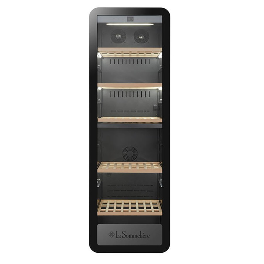 The La Sommeliere APOGEE190DZN double-zone ageing cellar stores up to 181 bottles with two independently controlled temperature zones so you can keep reds and whites at their ideal serving and ageing conditions in one unit. It uses built-in systems to help protect your collection from vibration, UV light and odours, and features LED interior lighting and adjustable wooden shelves to make organising and accessing bottles easy. Digital controls let you set and monitor temperatures precisely and alarms help alert you to any changes, giving you reliable everyday performance for long-term wine storage at home.