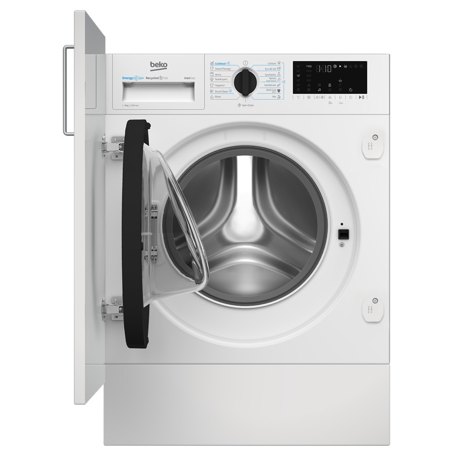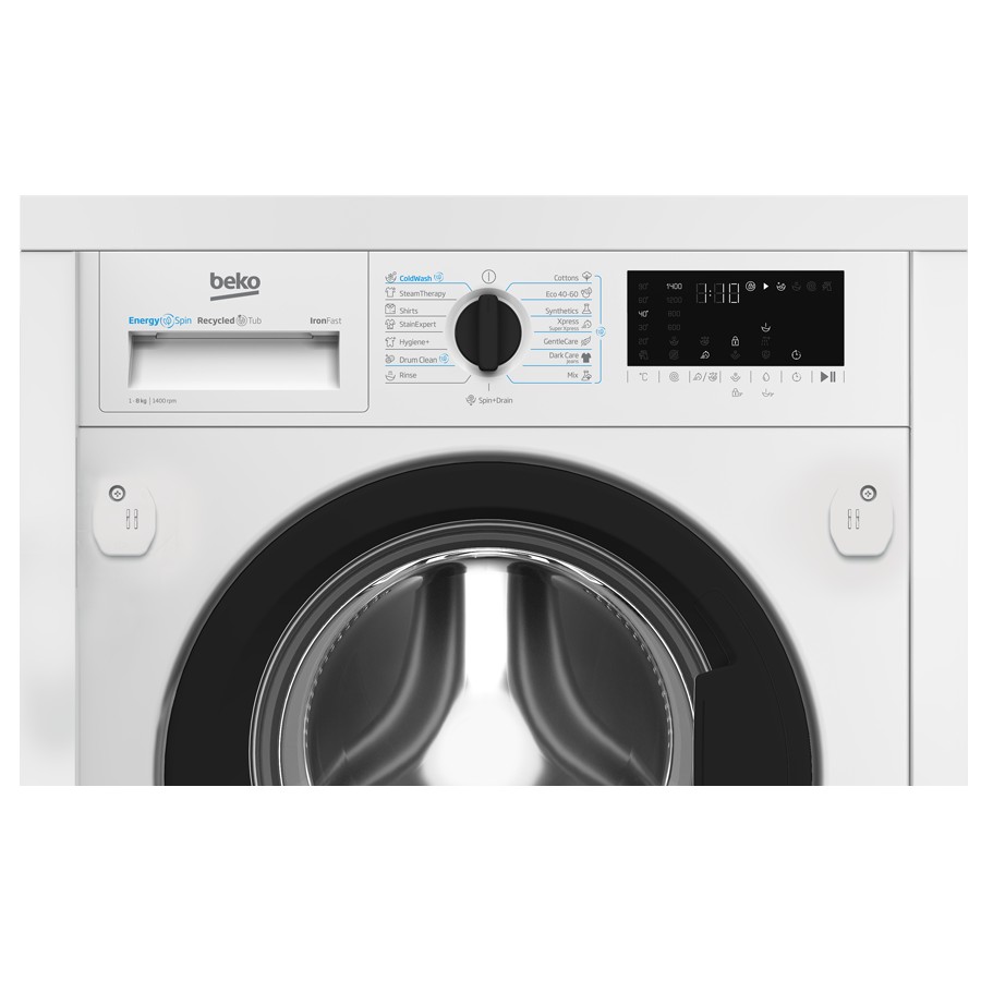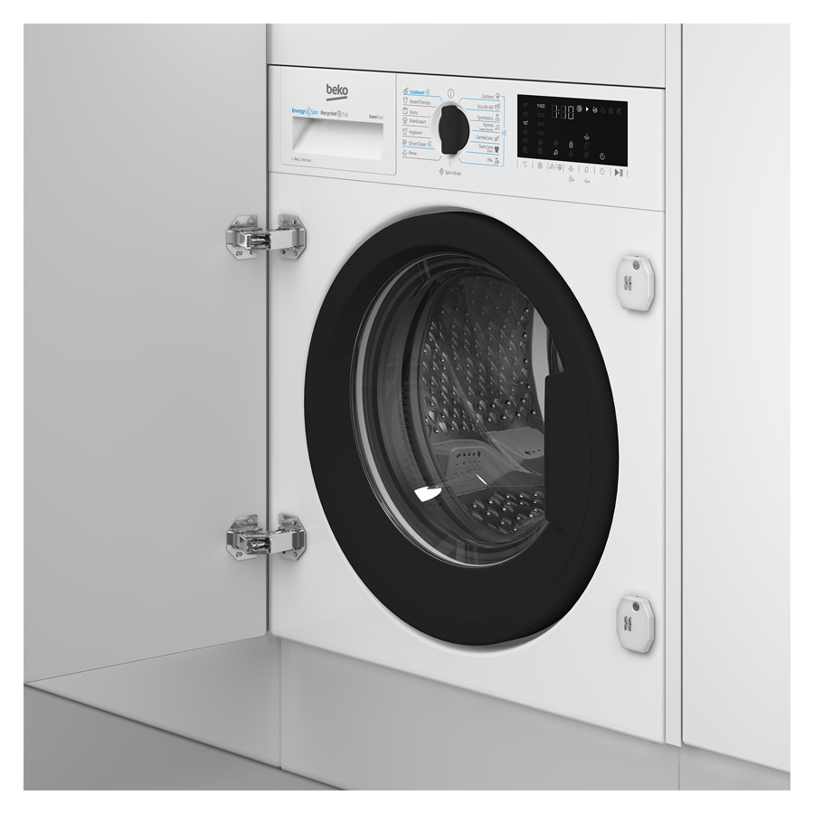 Meet the BEKO B3WBT681415W built-in washing machine, a sleek, efficient powerhouse built for modern homes. With an 8 kg capacity and up to 1,400 rpm spin speed, it handles large loads fast without compromising performance. Its ProSmart Inverter motor brings quiet, durable operation, while features like SteamCure, StainExpert, and AquaWave technologies deliver deep cleaning and fabric care. With 15 programs, 47 L water use per cycle, and Energy Class A efficiency, it’s designed for high performance, low consumption, and smart convenience.