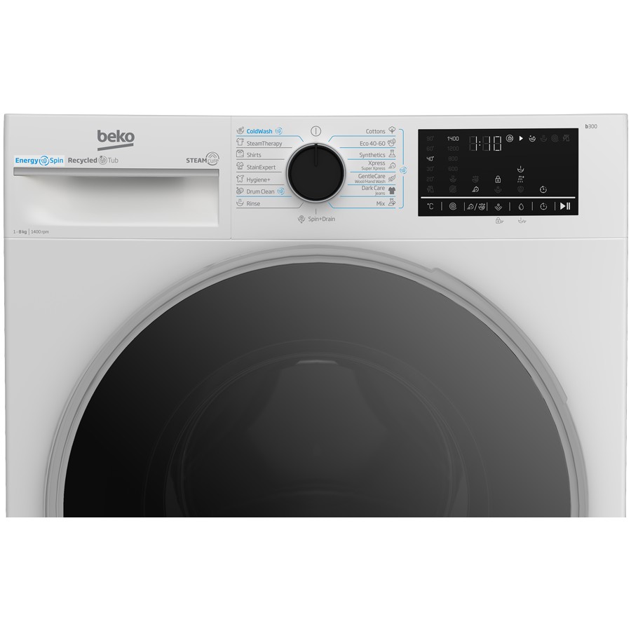 Meet the BEKO B3WFU48415WB2ES, an 8 kg front-load washing machine that blends power, efficiency and smart features. With a 1,400 rpm spin speed, ProSmart™ Inverter motor, and EnergySpin technology that reduces energy use by up to 35% for most wash programs, this model delivers excellent laundry performance with lower running costs.