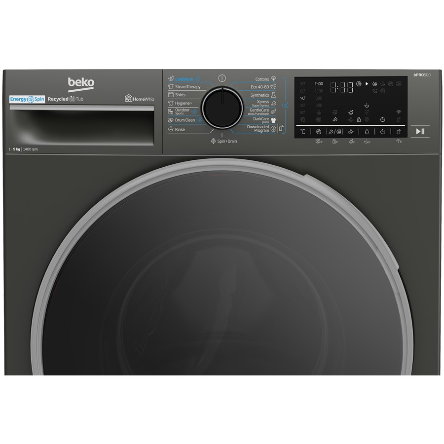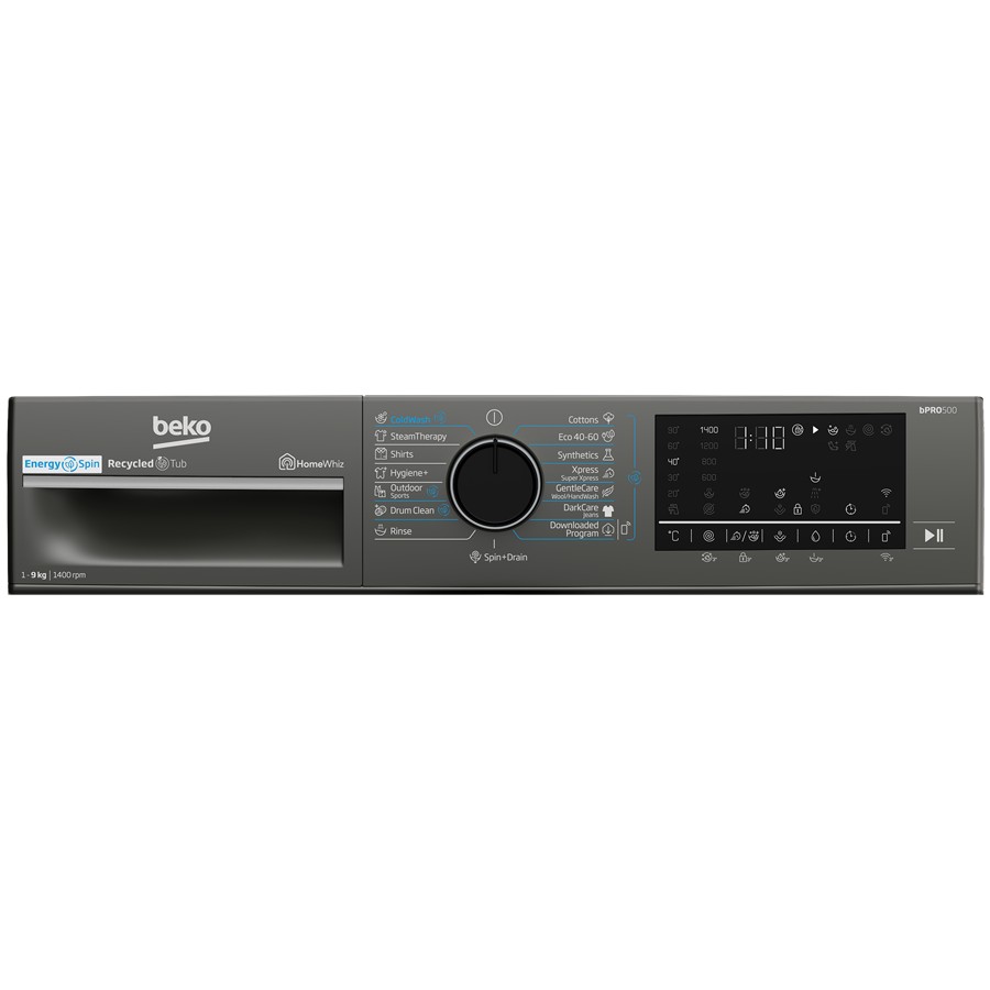 The Beko B5WFU69415MB2 ES Front-Loading Washing Machine combines powerful performance with smart fabric care, making it an excellent choice for modern households. With a large 9 kg capacity and 1400 rpm spin speed, it handles everything from everyday laundry to bulky bedding with ease. Innovative technologies such as EnergySpin™ help reduce energy consumption while maintaining excellent washing results, while the ProSmart™ Inverter Motor delivers quieter operation, improved efficiency, and long-lasting durability.