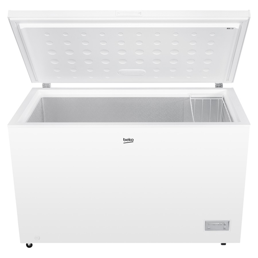 Store more and freeze with confidence using the Beko CF380EIWN Chest Freezer, a spacious and reliable solution designed for modern households. With a large 371-litre capacity, it offers ample room for bulk shopping, frozen meals, and family essentials, while the fast freezing function ensures food is quickly preserved to lock in freshness and nutrients. Built to perform even in extreme ambient conditions (SN-T climate class), this freezer delivers dependable cooling all year round. Its low noise level of just 40 dB ensures quiet operation, while the 36-hour power-cut protection keeps your food safely frozen during outages.