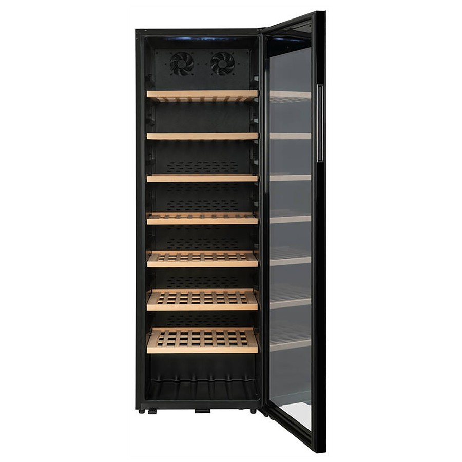 The La Sommeliere Classic185 ageing wine cellar stores up to 185 bottles in controlled conditions with an adjustable temperature range from about 5 °C to 20 °C to support long-term ageing and ready-to-drink storage. It creates a stable interior with automatic humidity management, UV-protected glass, anti-vibration design and active charcoal filtration to help maintain ideal conditions while LED lighting and seven removable wooden shelves make organising and accessing bottles easy. A digital control panel with alarms and remote app monitoring lets you adjust and track temperature and lighting, giving you reliable everyday performance for serious collections at home.