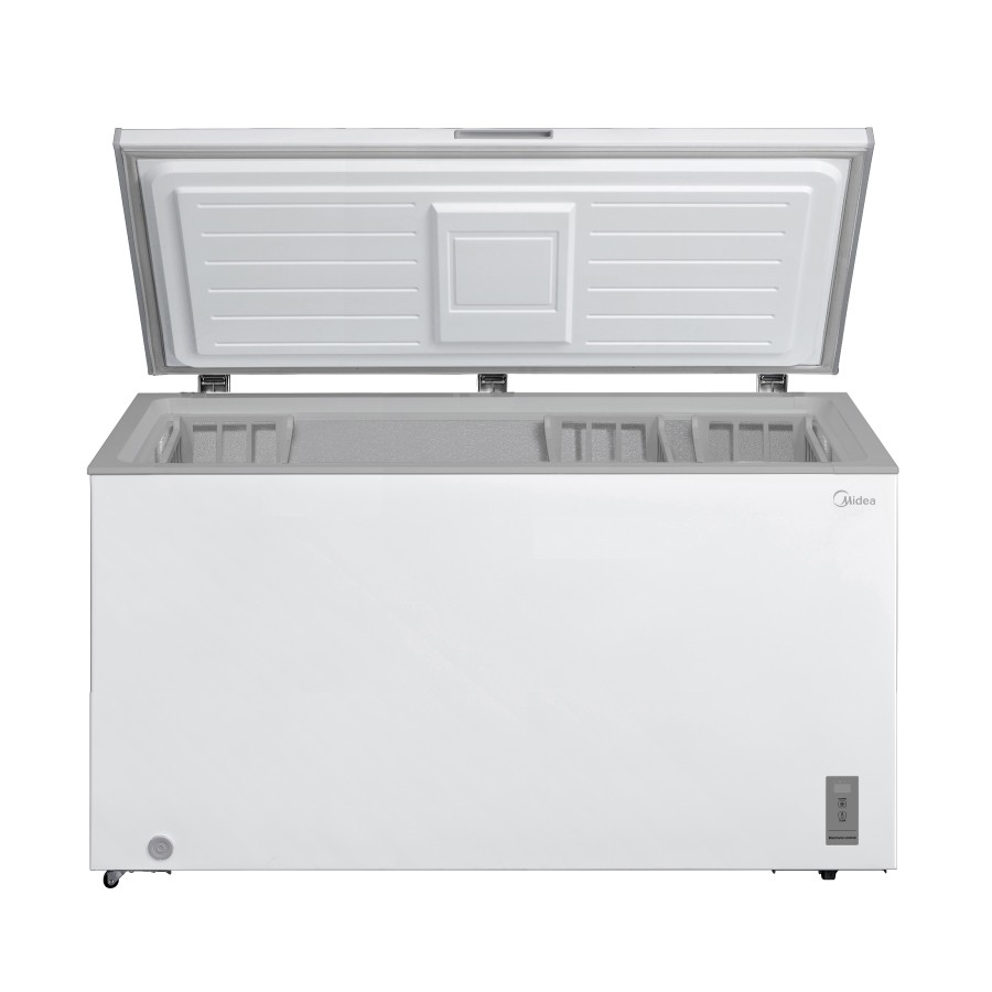 The Midea Chest Freezer MDRC564FZE01 offers a spacious 418L capacity and is designed for freestanding installation. With a sleek white finish and an energy rating of E, it provides efficient freezing with a static defrosting system and inverter compressor. The temperature range spans from 10°C to -30°C, perfect for versatile storage needs. Its noise level is a quiet 44 dB, and it can freeze up to 19kg in 24 hours. Additional features include a digital control panel, the ability to convert the freezer into a fridge, and a 2-year manufacturer’s guarantee. Ideal for large households, this chest freezer combines convenience, performance, and durability.