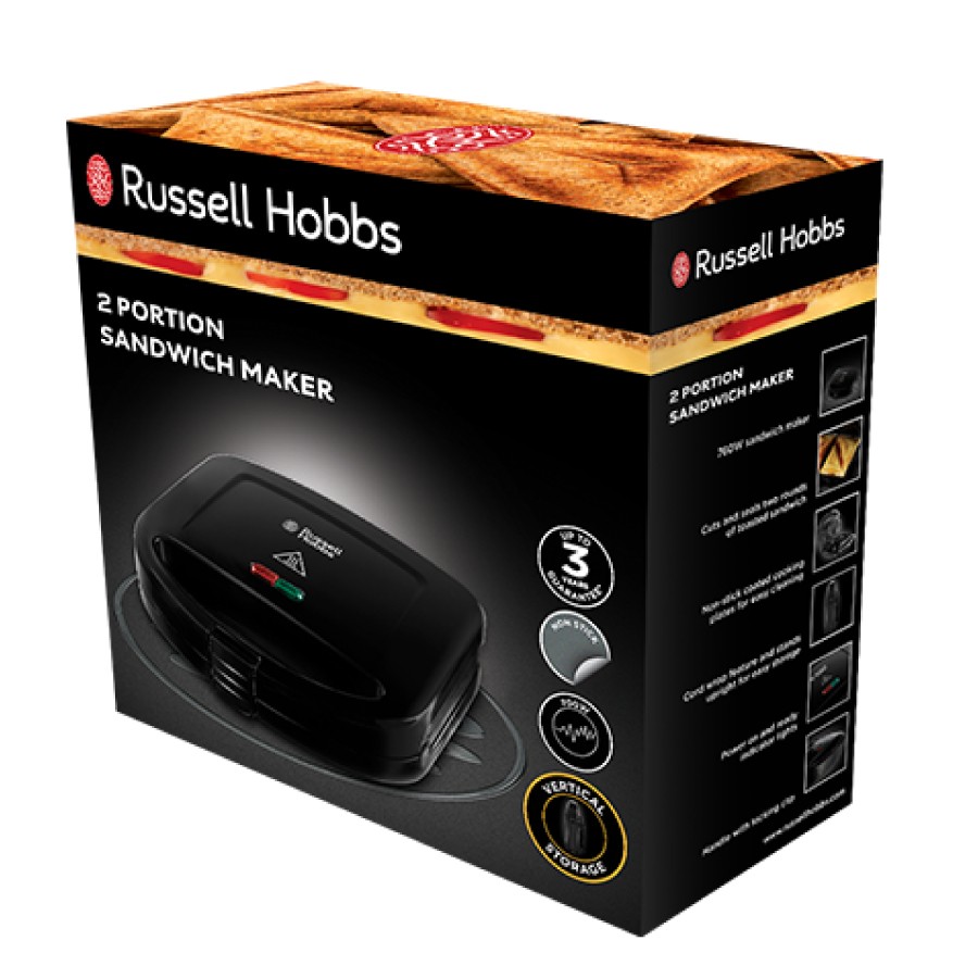 Create delicious toasted sandwiches in minutes with this compact and easy-to-use Russell Hobbs 2 Portion Sandwich Maker. Designed with non-stick plates for effortless food release and quick cleaning, it also features power and ready indicator lights so you’ll know exactly when it’s time to cook. Its space-saving upright storage makes it ideal for any kitchen, giving you a quick and tasty snack solution whenever you need it.