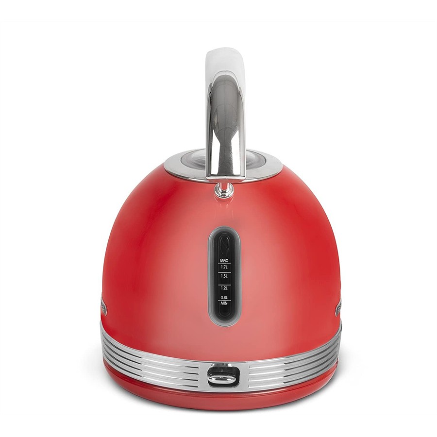 The SCHNEIDER SCKE17R Vintage Kettle is a 1.7 litre electric kettle with 2200 W of power for fast boiling. It features automatic shut-off and boil-dry protection for safe everyday use, and a 360° swivel base for convenient cordless pouring. The easy-fill lid and removable anti-scale filter help keep maintenance simple, making it a reliable choice for daily tea and hot drinks.
