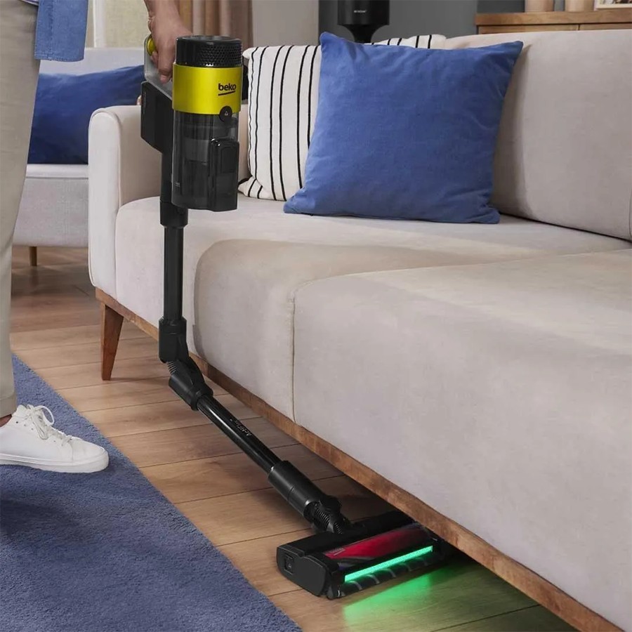 Experience unparalleled cleaning efficiency with the Beko PowerClean™ VRT97325VY Cordless Vacuum Cleaner. Equipped with a powerful 450W motor and 25.2V Li-Ion battery, it delivers up to 60 minutes of uninterrupted performance, effortlessly tackling dust and debris throughout your home. The advanced CyclonStorm™ technology ensures effective separation of dust and air, maintaining consistent suction power for thorough cleaning. Designed with user convenience in mind, this lightweight vacuum features an ergonomic handle and a versatile 2-in-1 design, allowing seamless transitions between upright and handheld modes to reach every corner with ease. The 0.5L dustbin minimizes the frequency of emptying, while the HEPA 12 filter captures even the finest particles, promoting a healthier living environment.