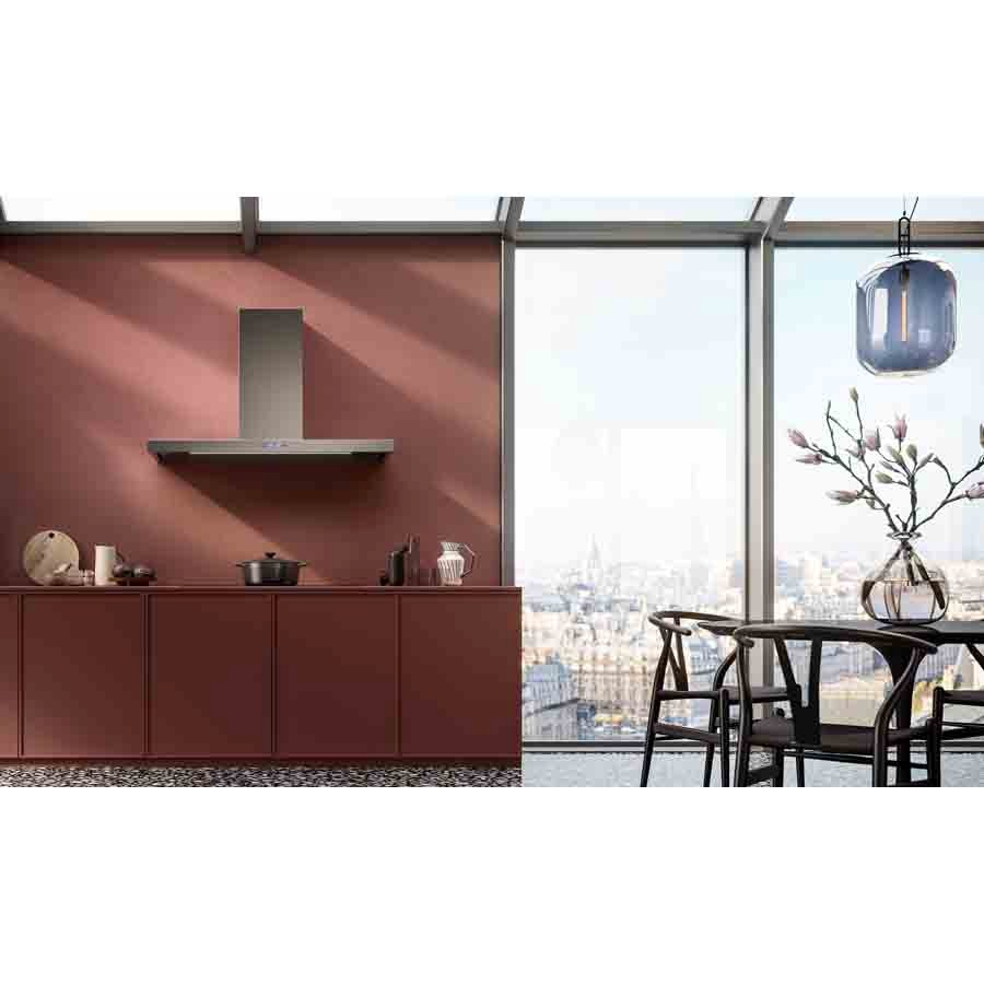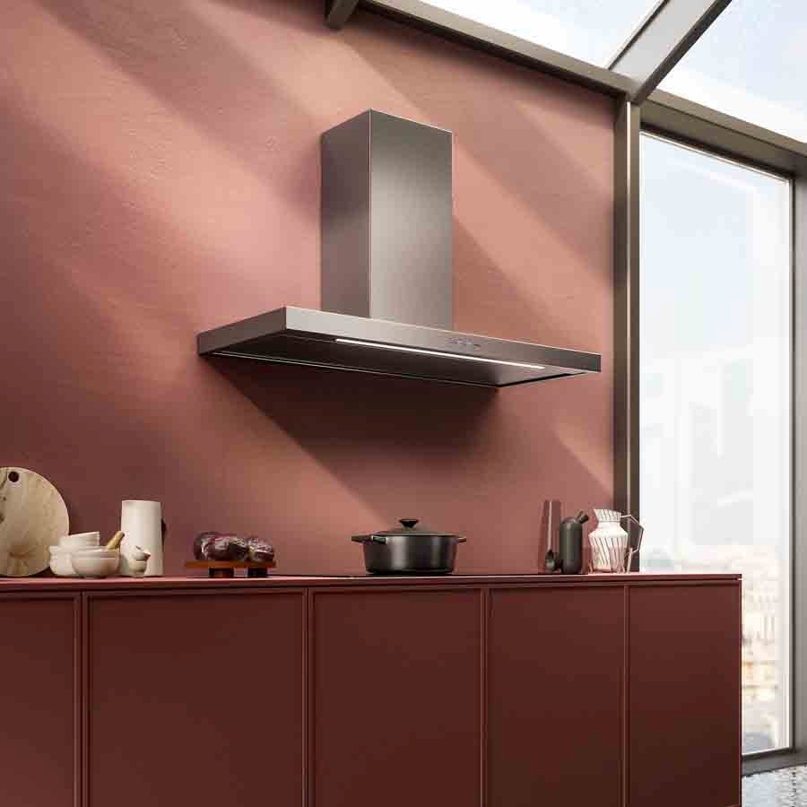 Crafted from premium AISI 304 stainless steel with a sleek Scotch Brite finish, the Falmec Plane Plus 120 cm wall hood blends professional grade performance with minimalist elegance. Its inverted T silhouette hides an 800 m³/h motor and perimeter suction system that efficiently clears cooking vapours while operating at a subdued 66-69 dB, making it ideally suited for modern open plan living. Featuring dynamic, dimmable LED lighting (2 700-5 600 K), electronic touch controls, and removable washable grease filters, it ensures both comfort and convenience. With energy class A efficiency, compatibility with the Falmec Dialogue System for smart hob to hood connectivity, and optional Carbon Zeo Microtech recirculation, this hood delivers top tier performance wrapped in refined Italian design perfect for those seeking both style and functionality in their cooking space.