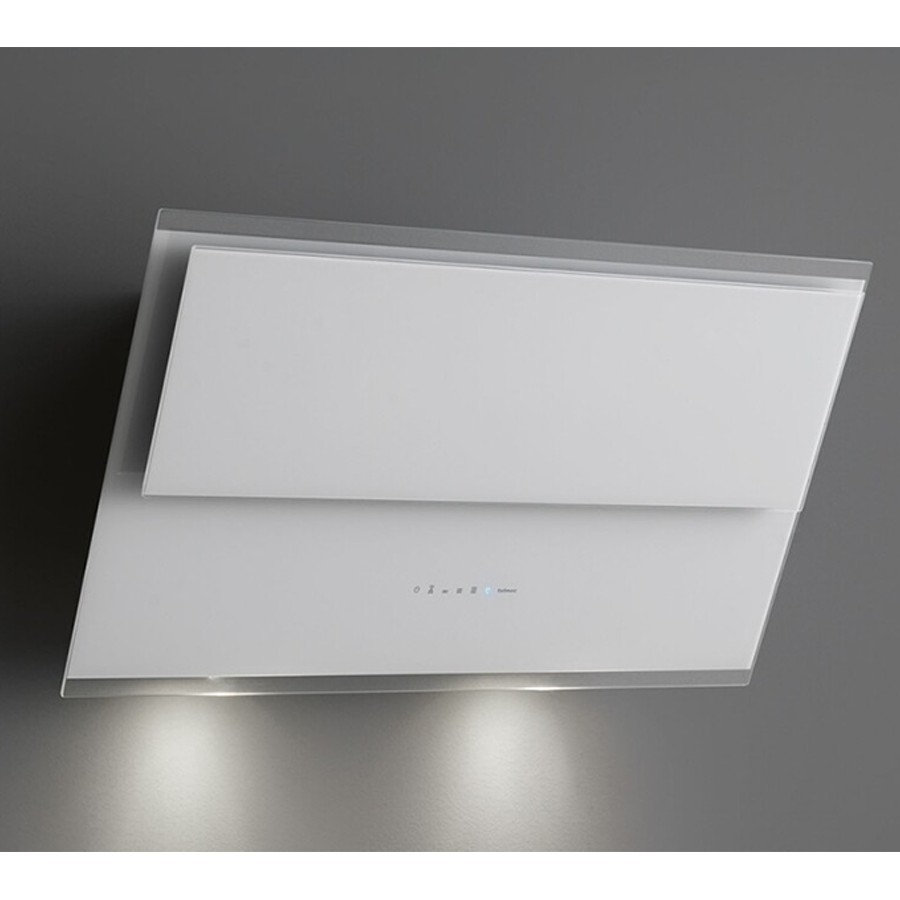 The Falmec Verso 85 cm wall-mounted hood in white glass combines striking design with efficient performance. Dual suction zones, powered by an 800 m³/h motor, ensure effective fume extraction from both front and underside. Touch controls, dimmable LED lighting (2700–5600 K), and compatibility with Falmec’s Dialogue System offer smart functionality, while washable filters and optional Carbon.Zeo or charcoal filtration keep maintenance simple.
