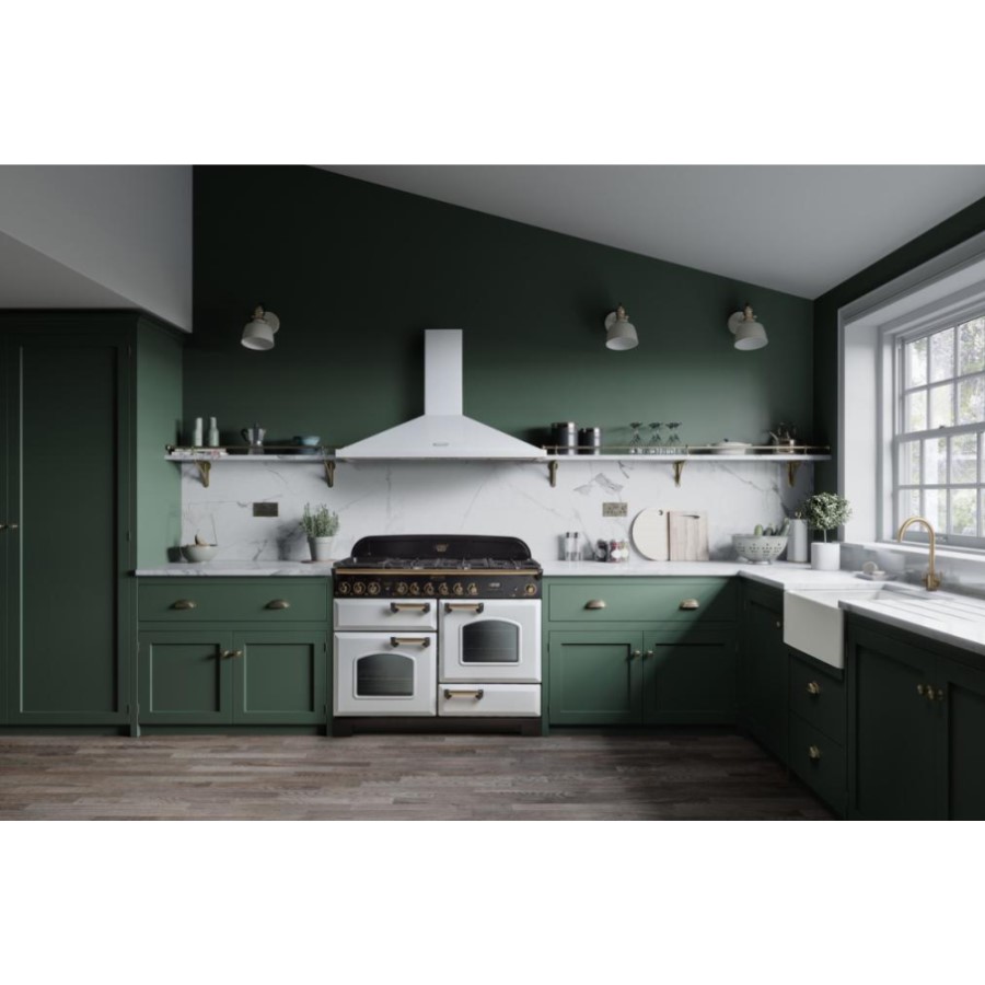 An elegant take on a beloved classic, this range cooker marries timeless charm with modern function. Its bevelled doors, arched-glass viewing windows, and built-in towel rail bring refined details to a statement centerpiece that’s offered in a palette of rich, elegant colours. Offering dual-fuel flexibility and LPG conversion, it powers a multifunction left oven, a fanned right oven, and a five-zone hob with a multi-ring wok burner for ultimate cooking control. The Rapid Response™ feature ensures faster heat-up times, while features like the HandyRack, programmable clock, and catalytic liners make it both intuitive and low-maintenance. Measuring just under a metre wide (994 mm) and rated A for efficiency, it’s a statement of heritage artistry with modern culinary performance.