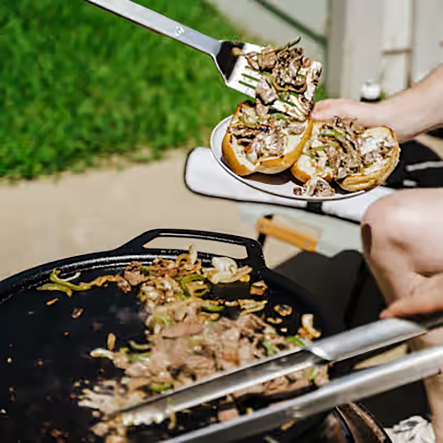 The GriddleTop+Hub-Yukon is a versatile cooking accessory designed to enhance the Solo Stove Yukon Fire Pit by allowing you to cook a variety of foods over the open flame. This accessory includes a griddle top and a hub, which securely fits over the Yukon fire pit. Made from durable, heat-resistant materials, the griddle top offers an even cooking surface ideal for grilling, frying, or sautéing. The hub ensures stability and proper placement on the fire pit. Perfect for outdoor cooking, the GriddleTop+Hub-Yukon expands the functionality of your Yukon fire pit, making it ideal for preparing meals while enjoying the fire.